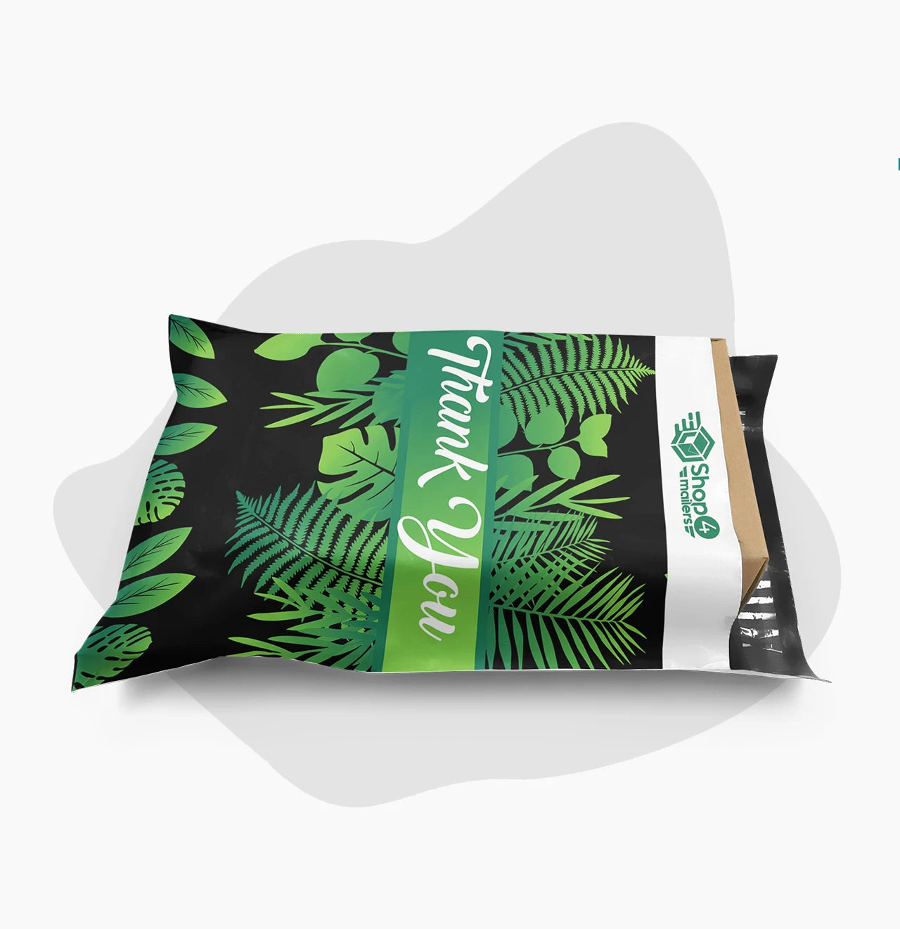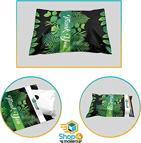 10 x 13 Thank You Tropical Palm Leaves Banana Leaf Black Poly Bag Mailer Envelopes 2 Mil | Shop4Mailers