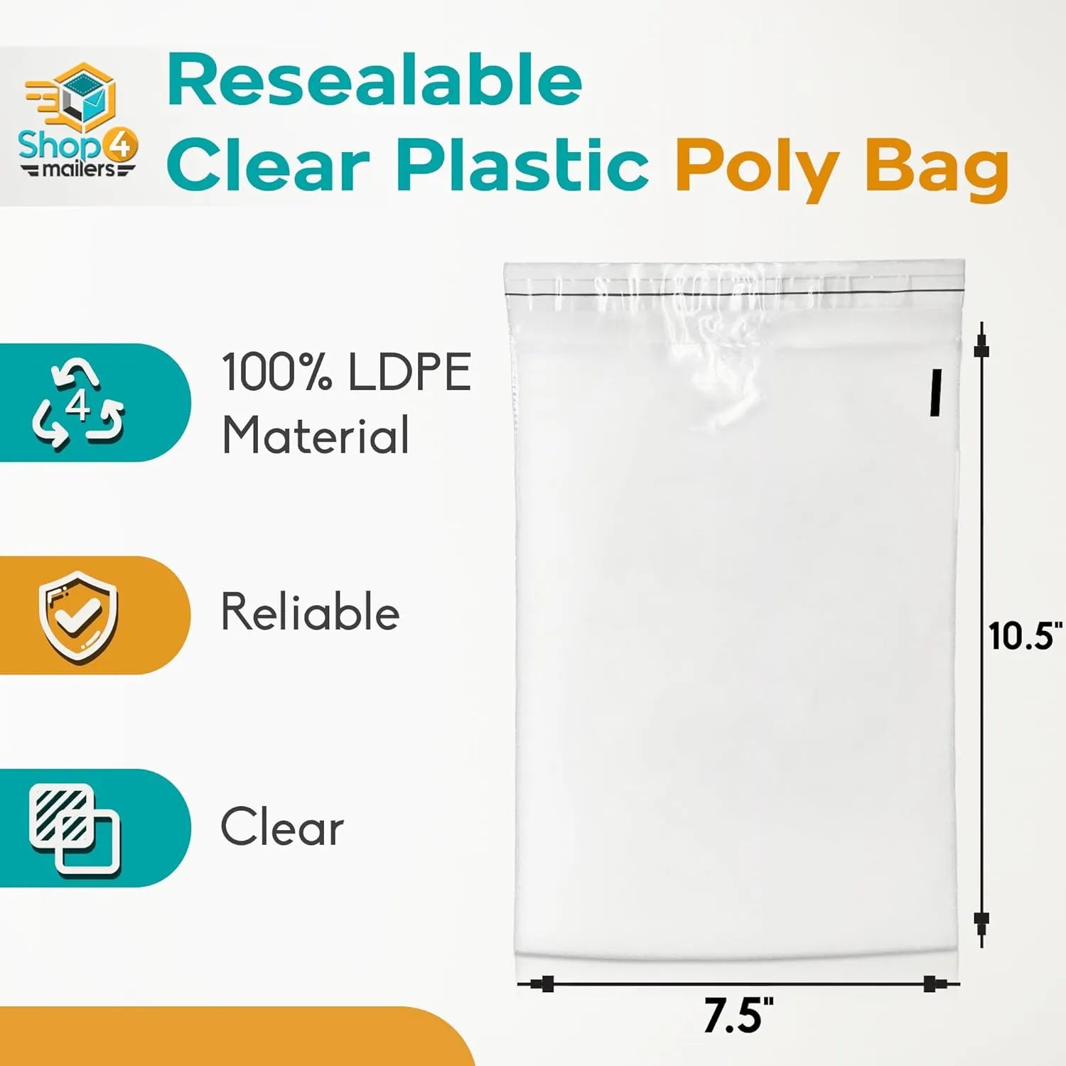 Packaging small and delicate items has never been easier thanks to our 7.5 x 10.5 Clear Plastic Self Seal Poly Bags. Never worry about your products getting lost in storage or falling out of the bag while being shipped ever again. These poly bags also protect your merchandise from dirt, moisture, water, and weather.