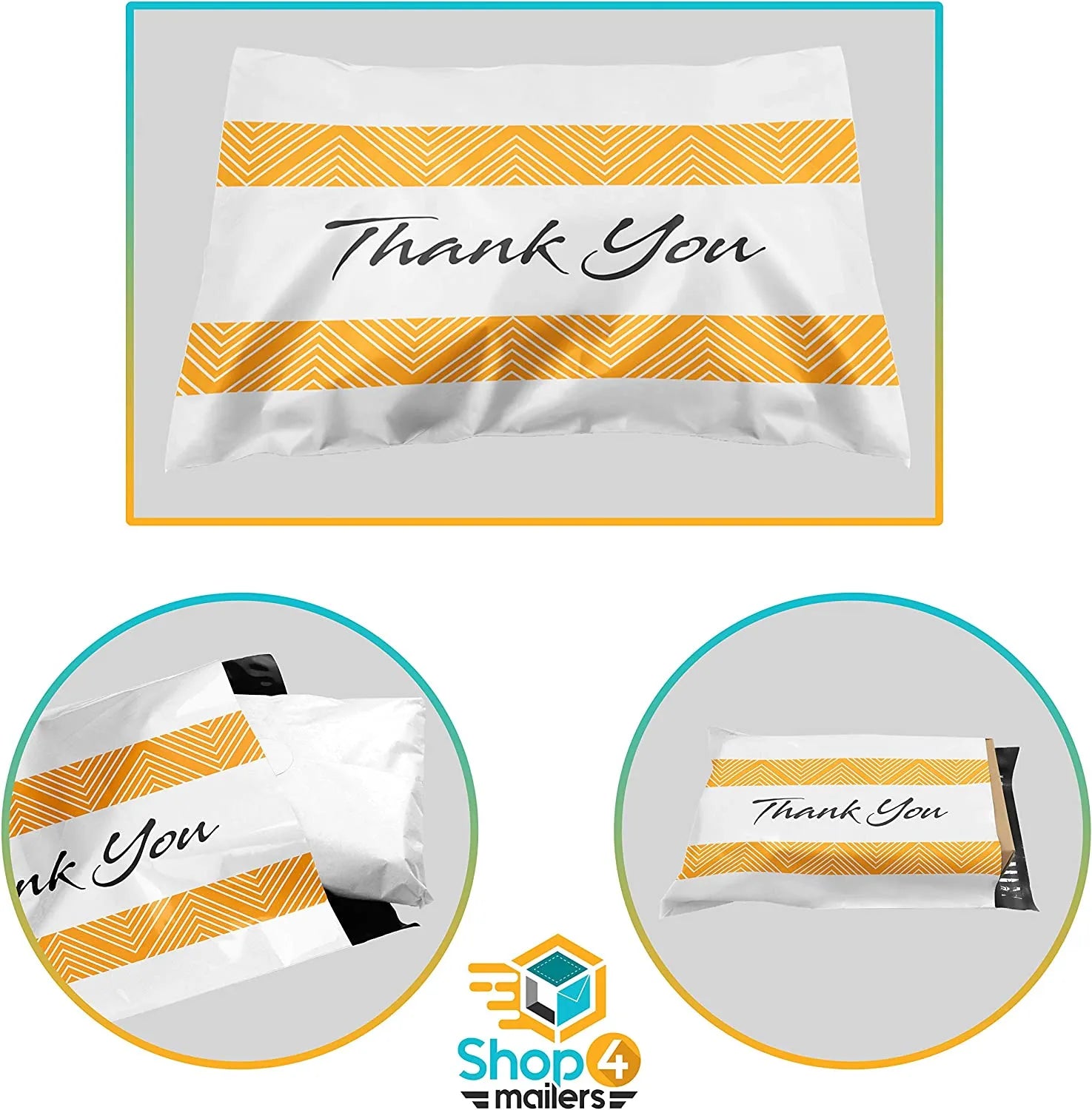 Customer appreciation happens every day when you ship with the Shop4Mailers 6 x 9 Glossy Multi-Language Thank You Poly Bag Mailer Envelopes! Each poly mailer envelope is adorned with adorable black and white graphics and features “thank you” printed in a variety of different languages.
