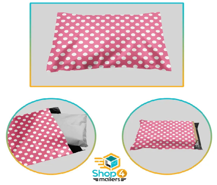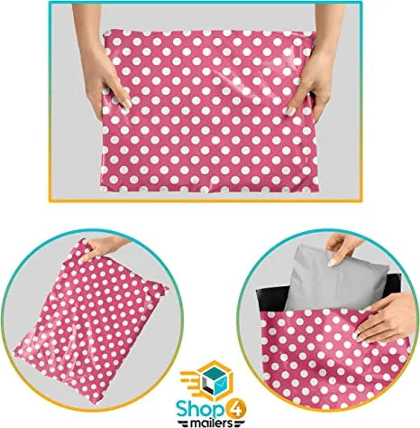 Send your packages in style with our 9 x 12 Pink Polka Dot Poly Bag Mailer Envelopes! These stylish poly mailers are guaranteed to put a smile on your customer’s faces with their bright pink design. In addition to being fun, they’re also functional. Made from durable 2 mil poly material, the bags are resistant to tears, punctures, and damage.