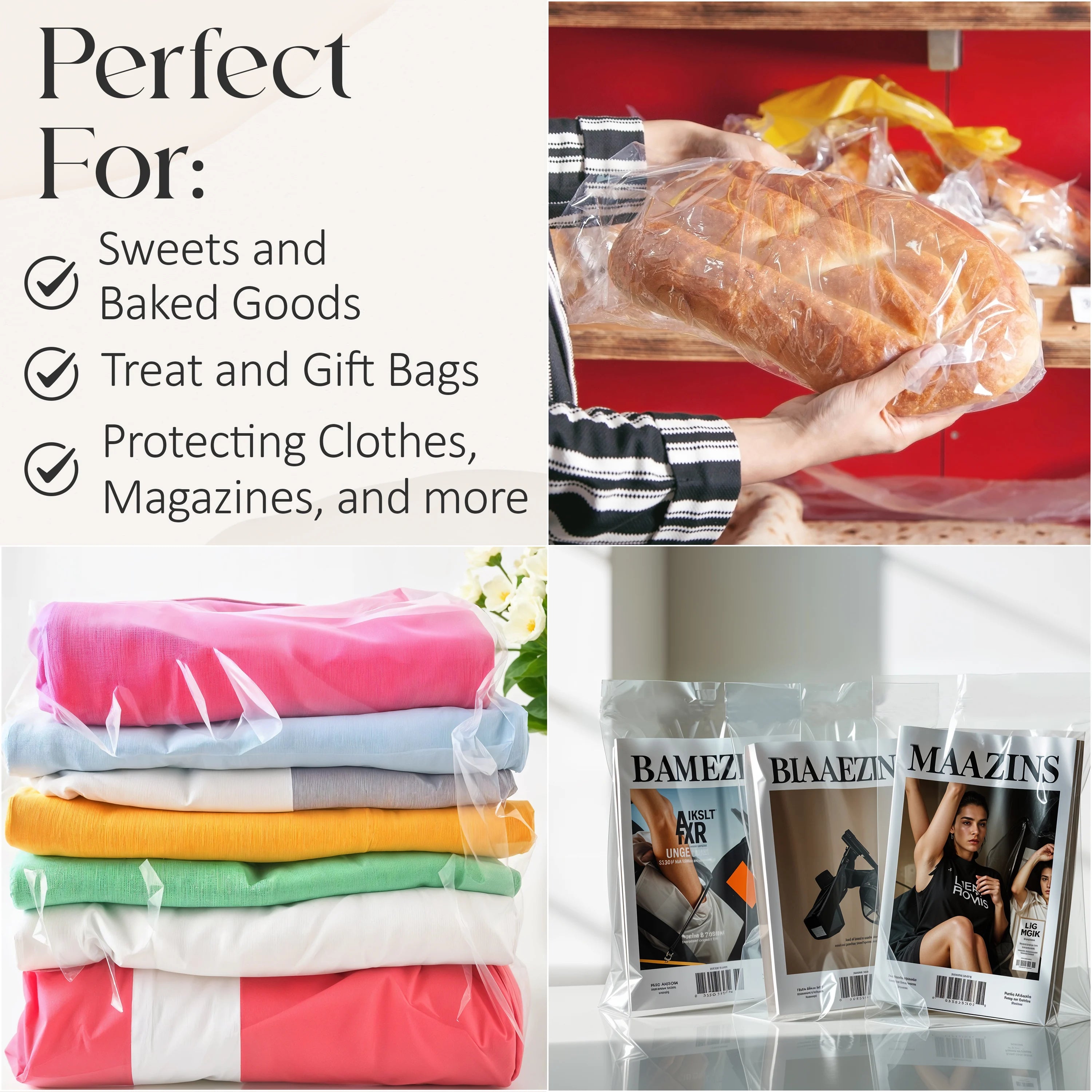 • Crystal clear shining cellophane ~ Perfect for gifts, party favors, wedding favors, jewelry, candy favors, homemade sweets, masks, clothing, and more.