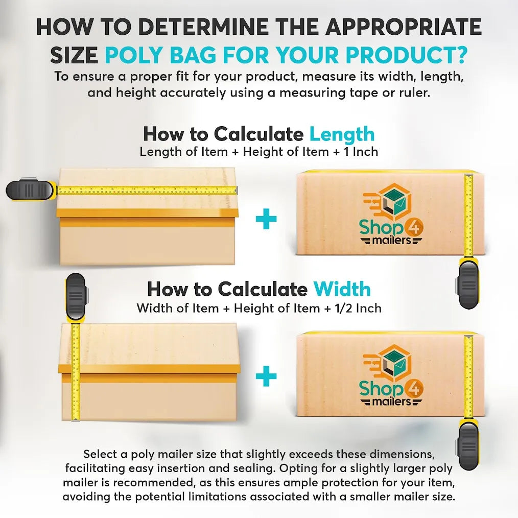 The poly mailer bags come in four different thicknesses to accommodate every type of cargo: 1.7” Mil, 2” Mil, 2.17” Mil, 2.50” Mil and 3.00" Mil. At 19 x 24 inches, you can easily fit multiple t-shirts, sweaters, pants, dresses, or even bedding in one bag.